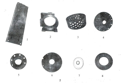 六、結(jié)構(gòu)簡(jiǎn)介 1、固定部分:(1)底座(2)泵體(3)定子(4)軸架(5)接管 (6)擋板(7)密封圈(8)靜環(huán)壓板